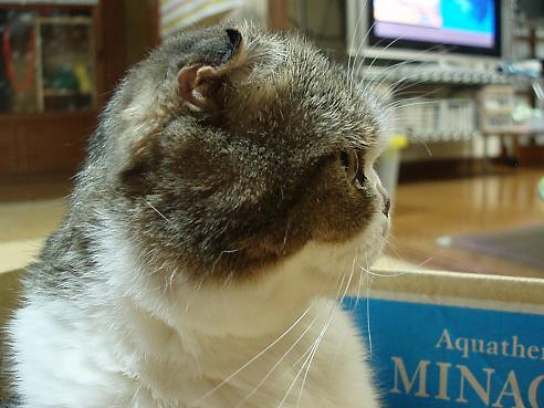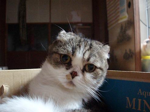 愛するもの:朝昼夜寝とスコ座り スコ座りのプロ。耳折れスコのはずだが、アメリカンカールも入っているかも? ハートブレイクっ鼻の持ち主。 腰に寝癖がチャームポイント・・・ 手足しっぽの短さには定評がある 写真を撮られるのが大きらい。