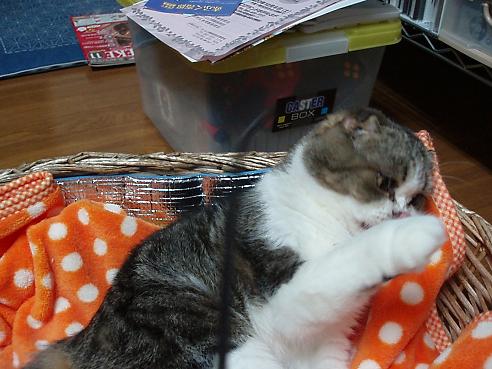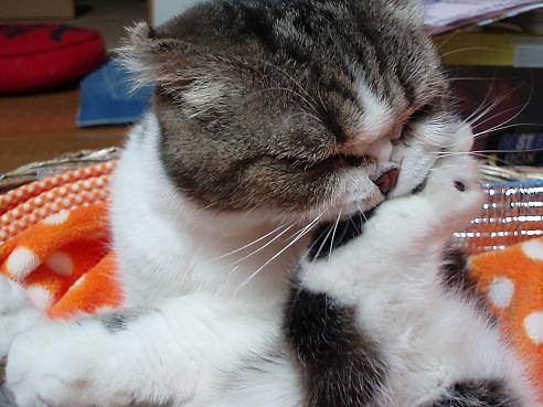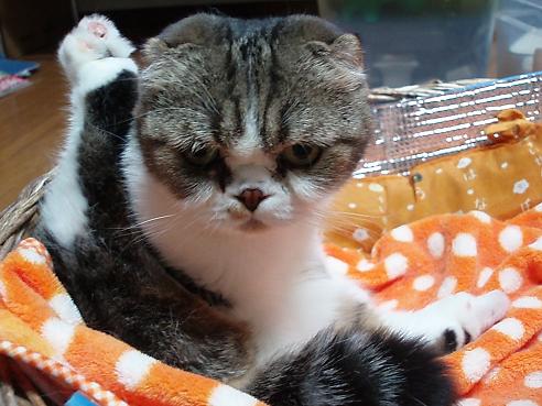 愛するもの:朝昼夜寝とスコ座り スコ座りのプロ。耳折れスコのはずだが、アメリカンカールも入っているかも? ハートブレイクっ鼻の持ち主。 腰に寝癖がチャームポイント・・・ 手足しっぽの短さには定評がある 写真を撮られるのが大きらい。