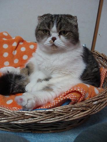 愛するもの:朝昼夜寝とスコ座り スコ座りのプロ。耳折れスコのはずだが、アメリカンカールも入っているかも? ハートブレイクっ鼻の持ち主。 腰に寝癖がチャームポイント・・・ 手足しっぽの短さには定評がある 写真を撮られるのが大きらい。