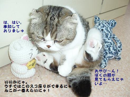 もふさん、色々忙しかったのねぇ・・・ ブログ更新止まっちゃうと、つい面倒くさくなっちゃうよね・・・ でも、皆応援してるから頑張ってちょっ!! あみまねきねこ?!凄いねぇ~~!! オリジナルなのかしら?私には出来ないぃぃ~ヽ(TдT)ノアーウ… 親分のてんちゃんにしっかり挨拶もできて、これからは極道家の一員だね(*`゚m゚´*)ゥププッ