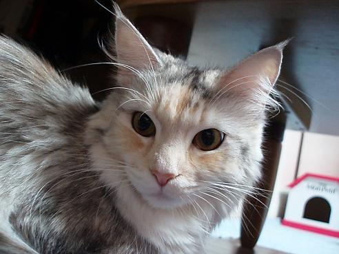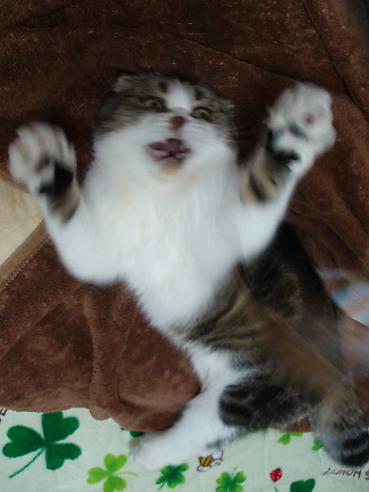 愛するもの:朝昼夜寝とスコ座り スコ座りのプロ。耳折れスコのはずだが、アメリカンカールも入っているかも? ハートブレイクっ鼻の持ち主。 腰に寝癖がチャームポイント・・・ 手足しっぽの短さには定評がある 写真を撮られるのが大きらい。