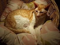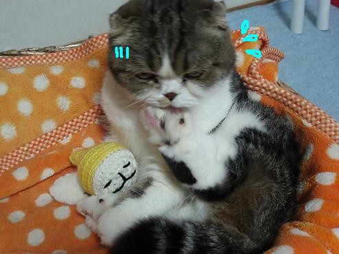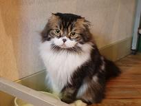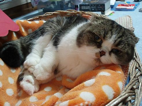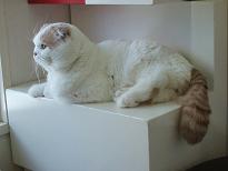 愛するもの:朝昼夜寝とスコ座り スコ座りのプロ。耳折れスコのはずだが、アメリカンカールも入っているかも? ハートブレイクっ鼻の持ち主。 腰に寝癖がチャームポイント・・・ 手足しっぽの短さには定評がある 写真を撮られるのが大きらい。