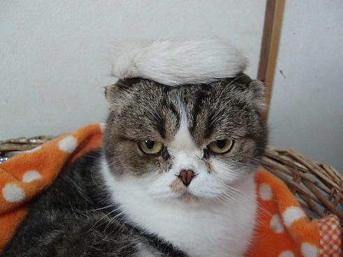 愛するもの:朝昼夜寝とスコ座り スコ座りのプロ。耳折れスコのはずだが、アメリカンカールも入っているかも? ハートブレイクっ鼻の持ち主。 腰に寝癖がチャームポイント・・・ 手足しっぽの短さには定評がある 写真を撮られるのが大きらい。