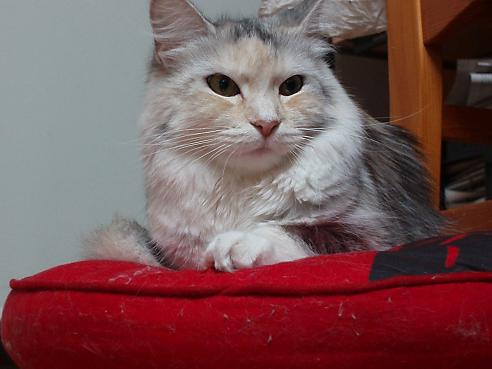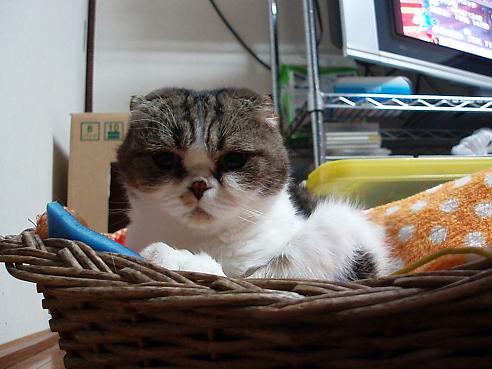愛するもの:朝昼夜寝とスコ座り スコ座りのプロ。耳折れスコのはずだが、アメリカンカールも入っているかも? ハートブレイクっ鼻の持ち主。 腰に寝癖がチャームポイント・・・ 手足しっぽの短さには定評がある 写真を撮られるのが大きらい。