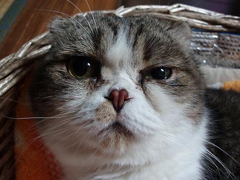 愛するもの:朝昼夜寝とスコ座り スコ座りのプロ。耳折れスコのはずだが、アメリカンカールも入っているかも? ハートブレイクっ鼻の持ち主。 腰に寝癖がチャームポイント・・・ 手足しっぽの短さには定評がある 写真を撮られるのが大きらい。