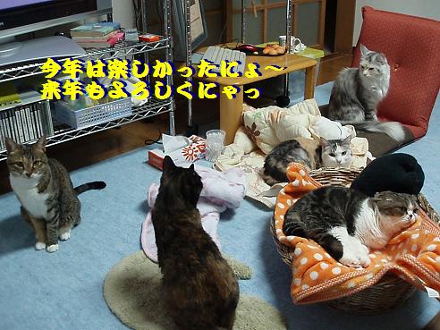 あらためて、有難う御座いました。<(_ _)> 来年も宜しくお願い致します。\(^o^)/ ゆずちゃん!親びんに…、(^_^;)アハハ 素朴な疑問を…、5にゃんなんですか? サイドを見て6にゃん1わんと思ってたんで…(^_^;)