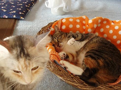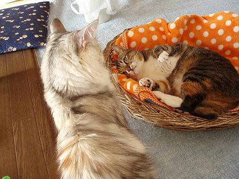 ミーちゃんは寝起き顔なのかな? しっかりてんちゃんのピンチヒッターになってるよ( ̄▽ ̄)b グッ! タビーちゃんをからかって、お手手でちょいちょい♪ 可愛いなぁ~~(≡゚∀゚≡)イイニャン でも、タビーちゃんはマジビビリ?(*≧m≦*)ププッ お目目の表情がとってもカワユスよ♪ 忍者ブログ [PR]