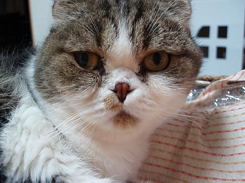 愛するもの:朝昼夜寝とスコ座り スコ座りのプロ。耳折れスコのはずだが、アメリカンカールも入っているかも? ハートブレイクっ鼻の持ち主。 腰に寝癖がチャームポイント・・・ 手足しっぽの短さには定評がある 写真を撮られるのが大きらい。
