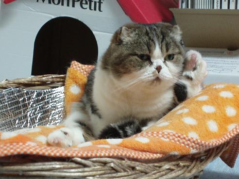 愛するもの:朝昼夜寝とスコ座り スコ座りのプロ。耳折れスコのはずだが、アメリカンカールも入っているかも? ハートブレイクっ鼻の持ち主。 腰に寝癖がチャームポイント・・・ 手足しっぽの短さには定評がある 写真を撮られるのが大きらい。