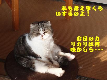 愛するもの:朝昼夜寝とスコ座り スコ座りのプロ。耳折れスコのはずだが、アメリカンカールも入っているかも? ハートブレイクっ鼻の持ち主。 腰に寝癖がチャームポイント・・・ 手足しっぽの短さには定評がある 写真を撮られるのが大きらい。