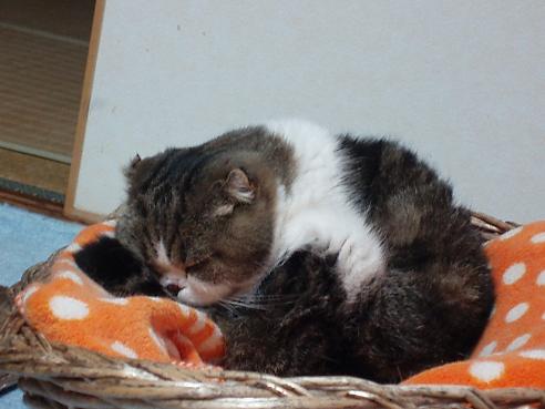 てんちゃん気持ち良さそうに寝てる~。 でもその体勢苦しくないのかな‥。 タビーちゃんも可愛い子だねえ♪ ホントにもふさんちのにゃんこはみ~んな 粒揃いダス!! もふさん、ゆっくり休んでね~~。