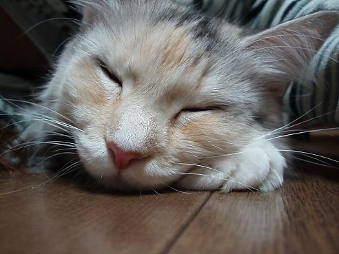 キックキャロットは中にマタタビが入ってますよん♪ イカは何の味付けもしてないのでおまけの粉とかで香りをつけた方がいいと思いますぅ。 本当に幸せそうな寝顔、めっさ癒されますね☆
