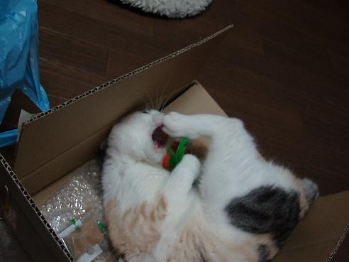 ゆずちゃん、待ちきれなくて箱に入って遊んでますね!