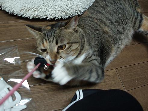 ゆずちゃん可愛い~~~ 隠していた玩具も見つけちゃったんだ^^ んふ~~~この可愛さに騙されて もし・・・手を出したらどうなるんだろ?? 出してみたい・・・ でも怖い・・・ タビーちゃんはこれは走りこみでしょうか? ずざ~~~って感じですね^^