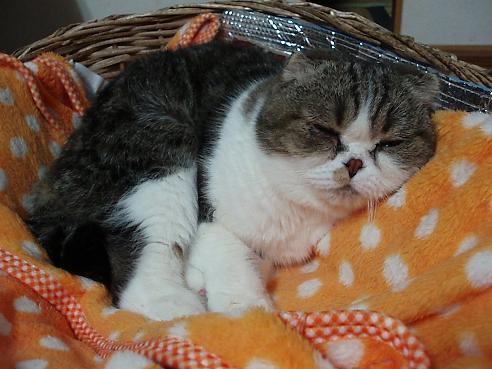 愛するもの:朝昼夜寝とスコ座り スコ座りのプロ。耳折れスコのはずだが、アメリカンカールも入っているかも? ハートブレイクっ鼻の持ち主。 腰に寝癖がチャームポイント・・・ 手足しっぽの短さには定評がある 写真を撮られるのが大きらい。