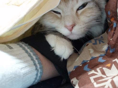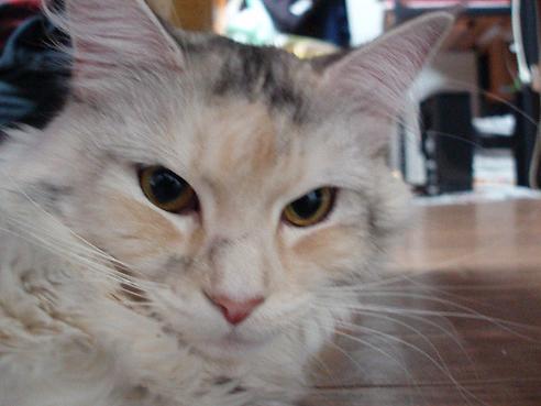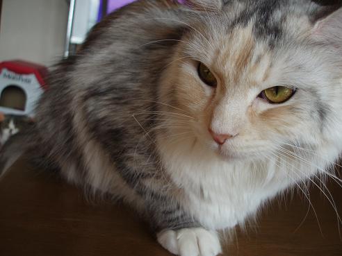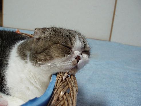 愛するもの:朝昼夜寝とスコ座り スコ座りのプロ。耳折れスコのはずだが、アメリカンカールも入っているかも? ハートブレイクっ鼻の持ち主。 腰に寝癖がチャームポイント・・・ 手足しっぽの短さには定評がある 写真を撮られるのが大きらい。