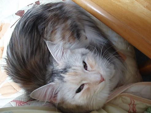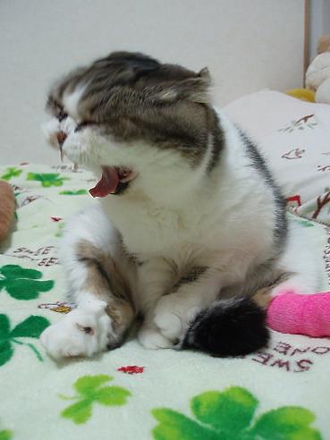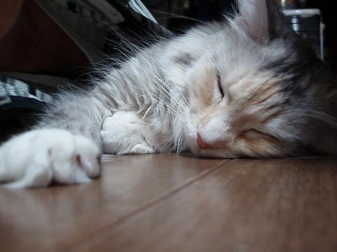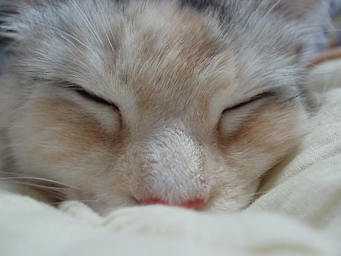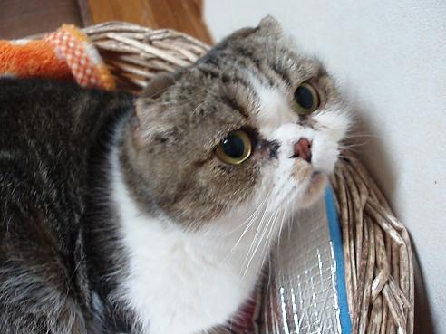 愛するもの:朝昼夜寝とスコ座り スコ座りのプロ。耳折れスコのはずだが、アメリカンカールも入っているかも? ハートブレイクっ鼻の持ち主。 腰に寝癖がチャームポイント・・・ 手足しっぽの短さには定評がある 写真を撮られるのが大きらい。
