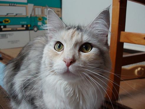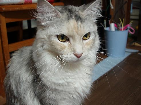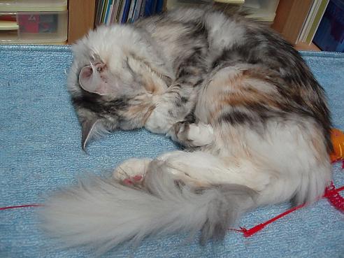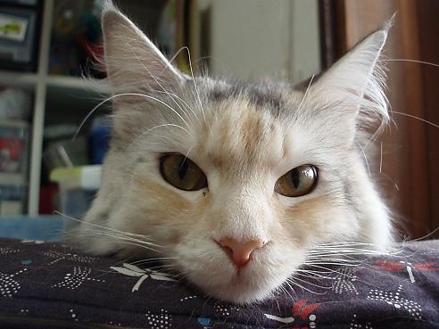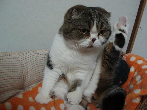 愛するもの:朝昼夜寝とスコ座り スコ座りのプロ。耳折れスコのはずだが、アメリカンカールも入っているかも? ハートブレイクっ鼻の持ち主。 腰に寝癖がチャームポイント・・・ 手足しっぽの短さには定評がある 写真を撮られるのが大きらい。