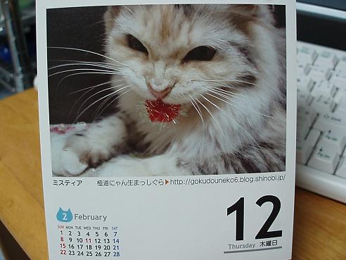 猫友日めくりカレンダーをお持ちではないみなさ~ん! これがカレンダーの写真で~~~っす ![]() ![]() ![]() 可愛いでしょ~~? うに玉くわえて、威嚇中で~~~っす! ![]() もふ的にはすっごいかわいい写真だと思うんだけど、 ![]() いかがでしょうか??? ![]() ![]() きょう2月13日はミーのお誕生日~~![]() ![]() ![]() ![]() ![]() 2歳になりました![]() ![]() ![]() どんどん大きくなって、他の子たちと全然体が違っています ![]() 今、4キロちょっとかな ![]() 他の子の倍近くありますね~ ![]() ゆずの額の上に手を置いて、ゆずの攻撃を受けないようにしています ![]() 体が大きいんだけど、絶対負ける・・・ ![]() 「肩乗り」「炊飯器乗り」「腹乗り」にゃんこですが、 まだまだやんちゃ盛り、食欲いっぱ~いの食欲魔人 ![]() もふ的には全体にもう少し大きくなってほしいなぁ ![]() ミーも写真が好きではないので、撮らせてくれないんだけど、 たぬき(てん)ときつね(ミー)と行き倒れ(シー)と ビビリ小姑(ゆず)とアンバランス(タビー)で 5にゃん仲良し写真を撮るのが今の目標 ![]() これからも極道にゃん生つっぱしれ~~っ!!! ![]() ![]()