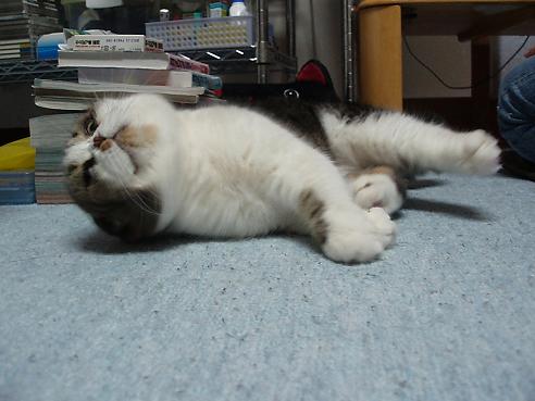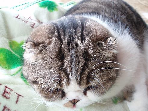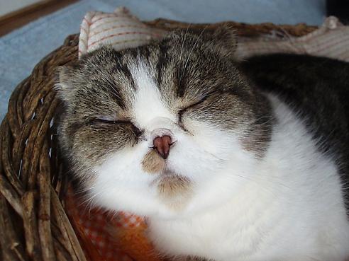 愛するもの:朝昼夜寝とスコ座り スコ座りのプロ。耳折れスコのはずだが、アメリカンカールも入っているかも? ハートブレイクっ鼻の持ち主。 腰に寝癖がチャームポイント・・・ 手足しっぽの短さには定評がある 写真を撮られるのが大きらい。