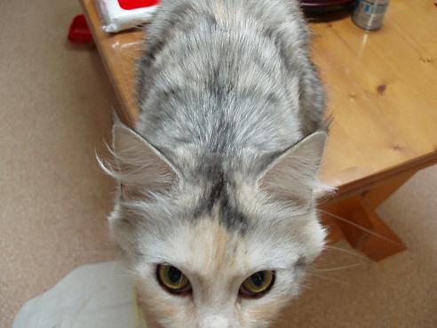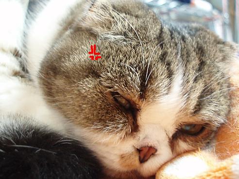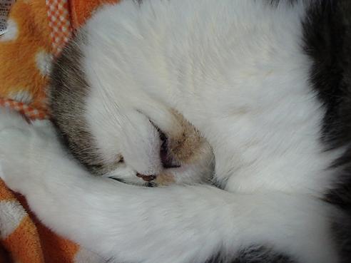 愛するもの:朝昼夜寝とスコ座り スコ座りのプロ。耳折れスコのはずだが、アメリカンカールも入っているかも? ハートブレイクっ鼻の持ち主。 腰に寝癖がチャームポイント・・・ 手足しっぽの短さには定評がある 写真を撮られるのが大きらい。