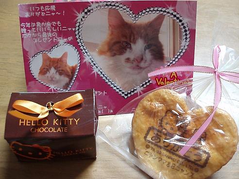ね・・・狙われています~~ ![]() ![]() 今日も頂き物~ ![]() 「8匹のネコと毛だらけの毎日」のニャンママから 玲君 のポストカード とキティちゃんのチョコキティちゃんと「ニャンママ&8ニャンズ」の 名前がプリントされたおせんべい ![]() こういうのも作れるのねっ!すごいわ~ ![]() でも、もったいなくて食べられな~~~いっ! ![]() ニャンママん家の玲君はいま闘病中 ![]() とってもとってもがんばり屋さんなんだよっ! ![]() ニャンママも玲君の看病と7にゃんずのお世話で忙しい毎日 ![]() それでもこうして送ってくれて、本当にありがとうっ! ![]() 玲君のお写真欲しかったから、とってもとっても嬉しいの~っ!!! あ~~~っ!タビーちゃん、玲君に惚れたな~~っ! ![]() ぢっと見つめる姿がいぢらしいわ~ ![]() 玲君、元気になることを信じてるからねっ! ![]() ![]() ニャンママ、本当に本当にありがとう! ![]() ![]() そして、もふは大変なことを忘れていることに気がついた・・・ ![]() それは、また後日・・・ ![]() PR